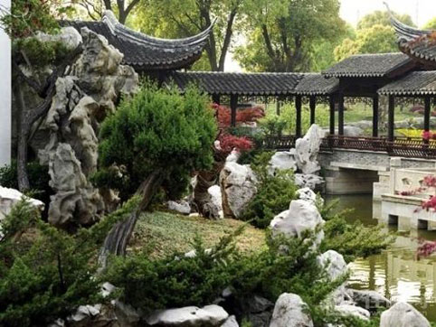 粉墻黛瓦、亭臺樓閣、假山、流水、曲徑、梅蘭竹菊等。特點:渾然天成,幽遠空靈;在造園手法上,中國傳統(tǒng)園林“崇尚自然,師法自然”,講求“雖由人造,宛如天開”,在有限的空間范圍內利用有效的自然條件,模擬大自然中的美景。
