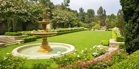 臺地、雕塑、噴泉、臺階水瀑、整形植物。特點:多采用中軸對稱形式,開辟一層層的臺地、噴泉、雕像等,植物選擇上突出常綠樹而少用鮮花。